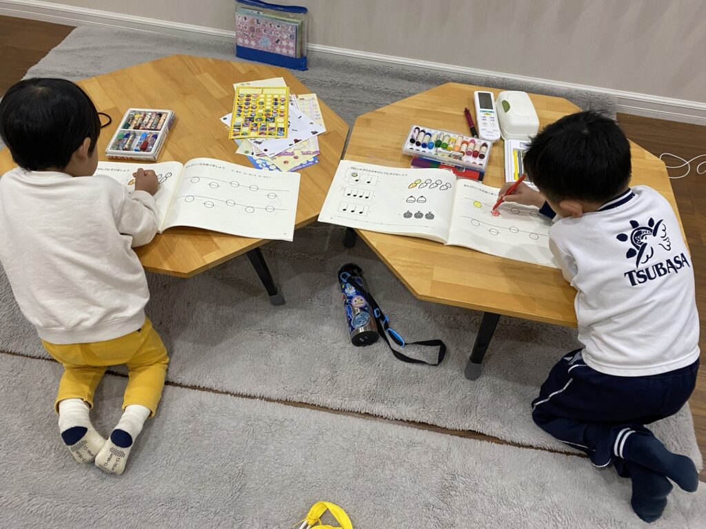 年少さんのレッスンでは、音符のワークでドレミを覚えます