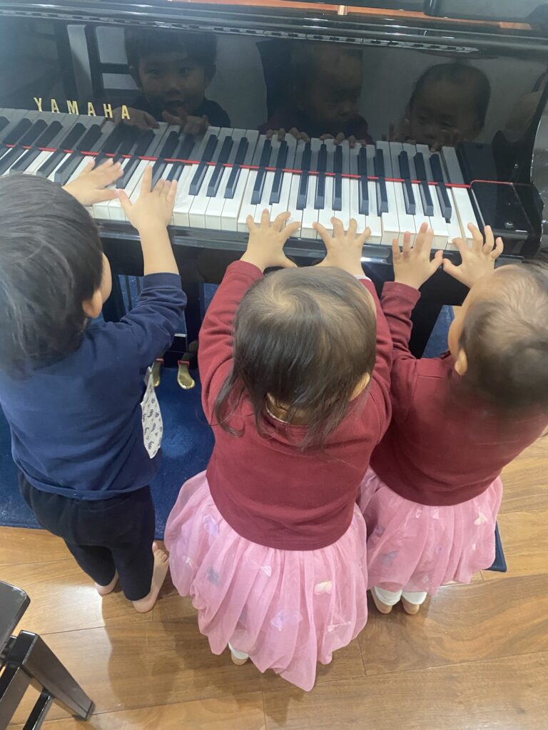 ピアノの前で楽しそう!