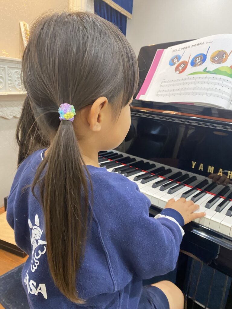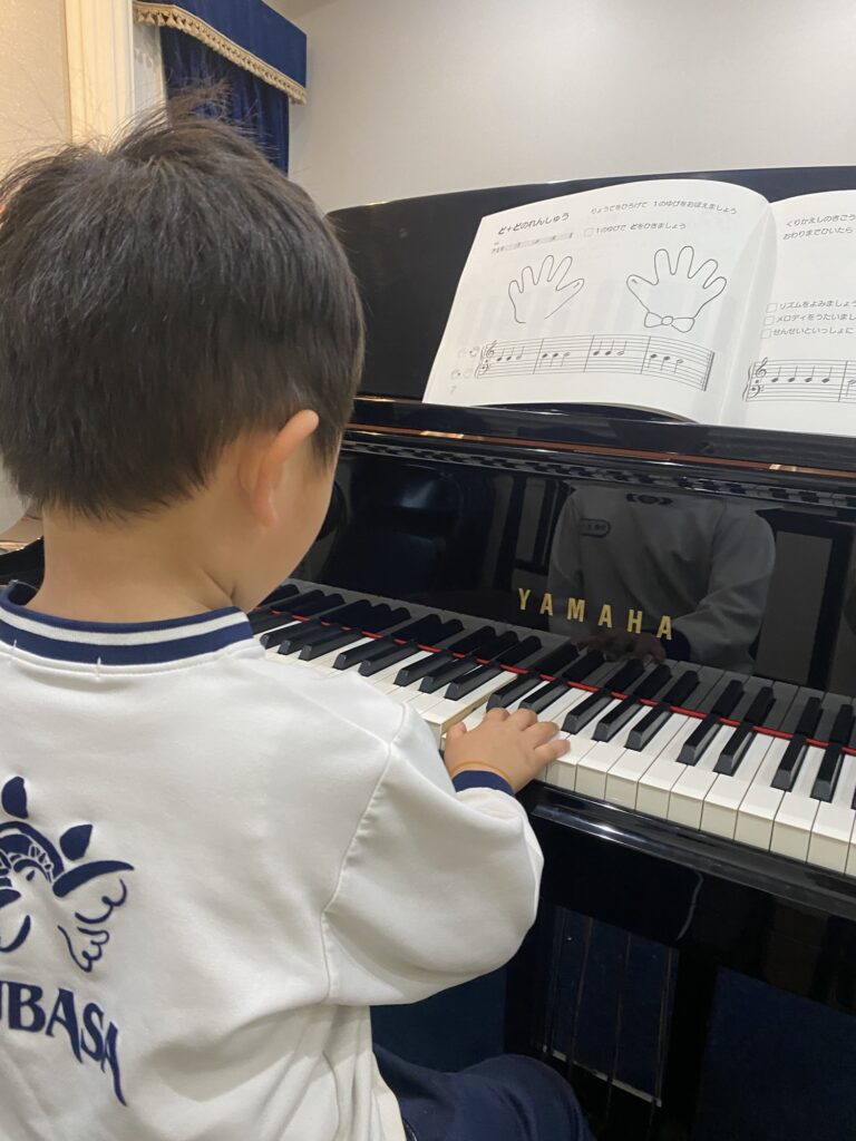 ピアノの前で楽しそう!